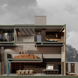 Os pavimentos superiores são formados por mezaninos intercalados que permitem uma maior permeabilidade de luz natural e interagem diversos ambientes.
