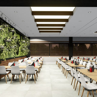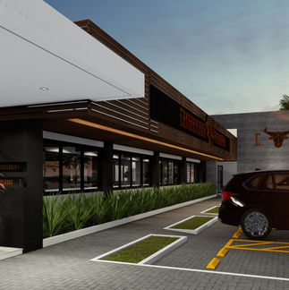 O retrofit da churrascaria trouxe mais refino e elegância, tornando o edifício um atrativo para os clientes. Estruturas em madeira ripada dão acabamento a estruturas existentes e elementos em concreto aparente marcam os acessos e destacam a logomarca.