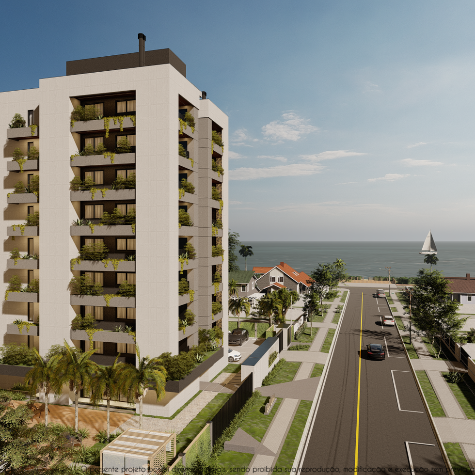 Com vista para o mar, o edifício foi projetado a partir de blocos verticais, esculpidos de forma a criar varandas amplas e um belo jogo de volumes. Diversas floreiras permitem que o paisagismo esteja presente em todas as fachadas do edifício, trazendo mais sombra e ar fresco para os apartamentos.